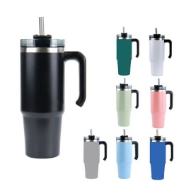 30 OZ Double Walls Stainless Steel Auto Tumbler With Straw And Handle